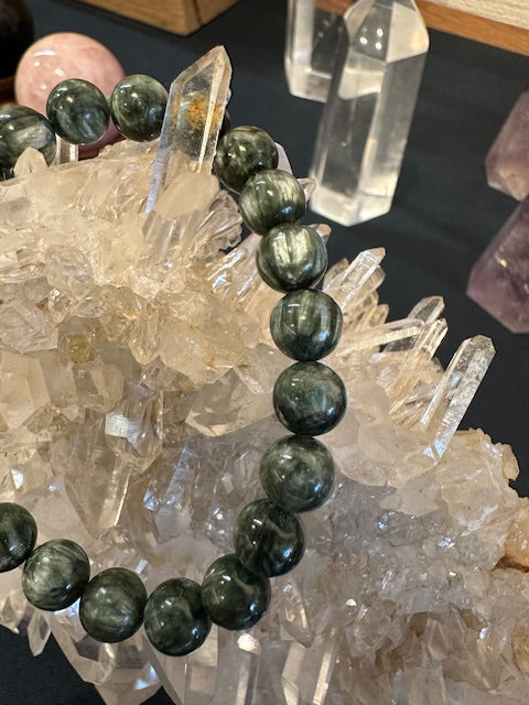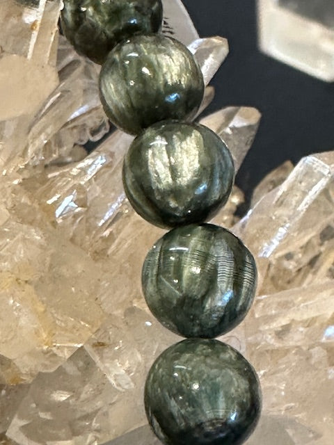 Armbang mit polierten Seraphinit Kugeln 8mm - auch Engelsflügel genannt