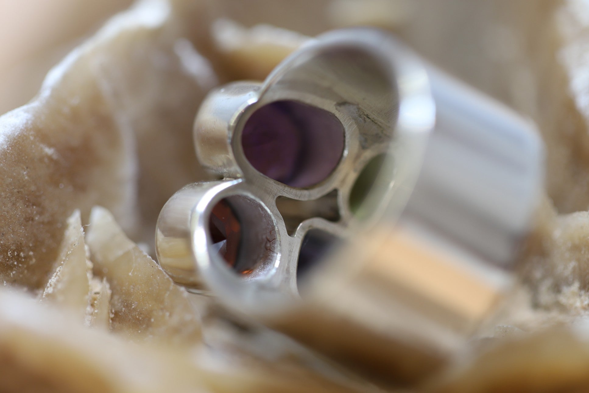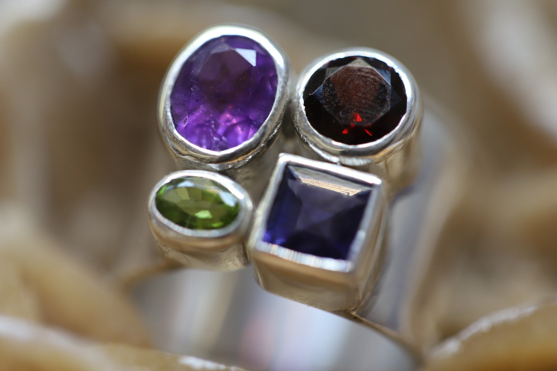 Ring aus Silber 925 mit facettierten Amethyst / Granat / Peridot und Saphir